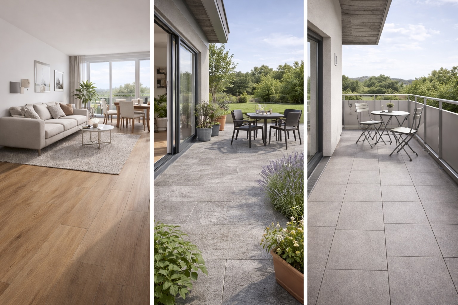 Fliesen verbinden Wohnräume, Terrassen und Balkone zu einer robusten, pflegeleichten und gestalterisch einheitlichen Fläche. Mit der passenden Kombination aus Format, Oberfläche und Verlegung entstehen innen wohnliche, warme Böden und außen dauerhaft frostsichere, rutschhemmende Beläge, die Alltag, Wetter und intensiver Nutzung zuverlässig standhalten.