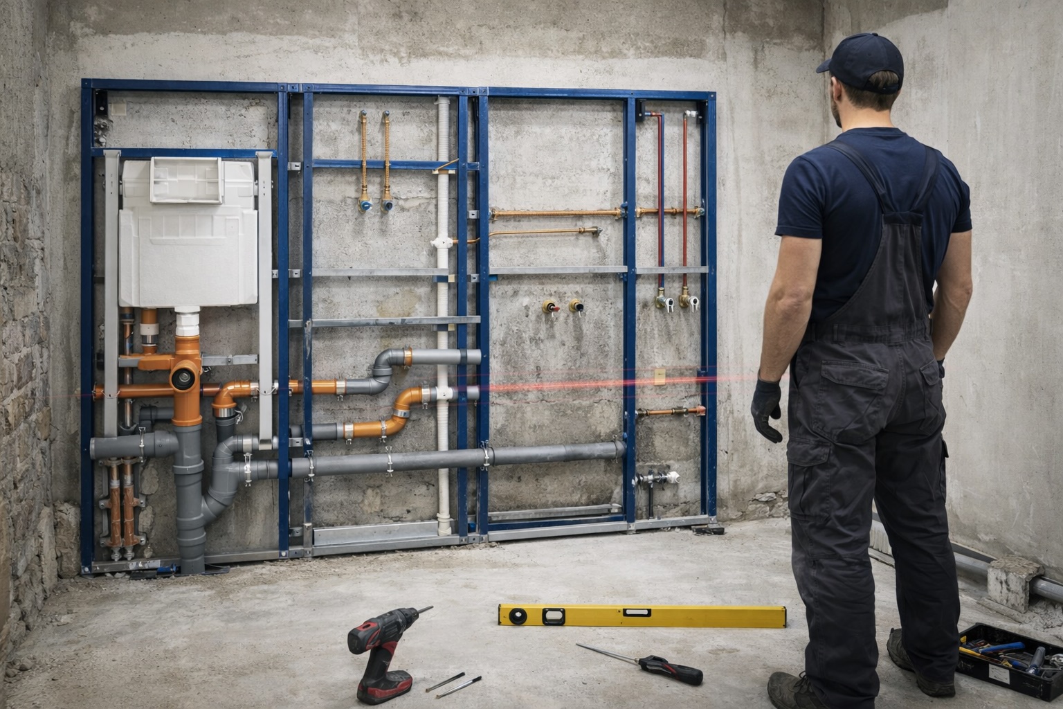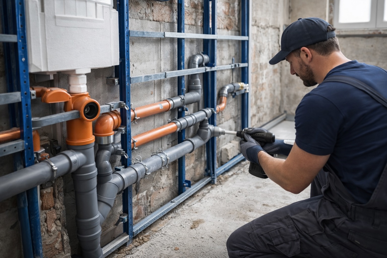 Was später unsichtbar hinter Fliesen verschwindet, wird in der Rohinstallation sorgfältig geplant und präzise ausgeführt.