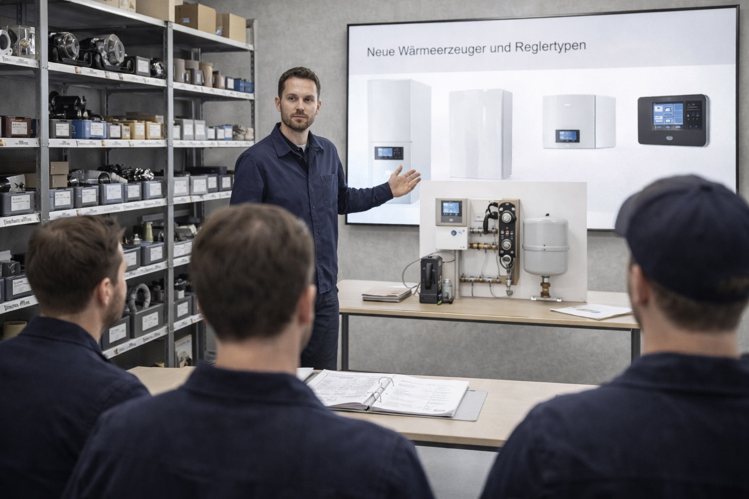 Regelmäßige Schulungen des Servicepersonals zu neuen Regelungen, Wärmeerzeugern und gesetzlichen Vorgaben halten den Kundendienst kompetent und zukunftssicher.