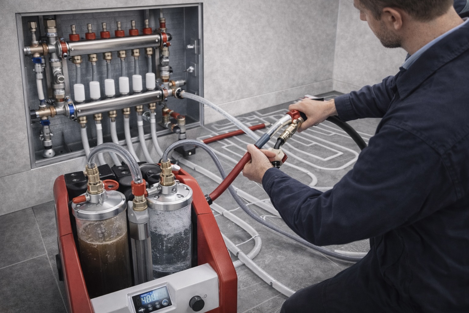 Etwa alle 5 bis 7 Jahre sollte das System gespült werden, um Ablagerungen, Luft oder Schmutz zu entfernen. So bleibt die Heizleistung optimal, und die Anlage arbeitet dauerhaft zuverlässig und energiesparend.